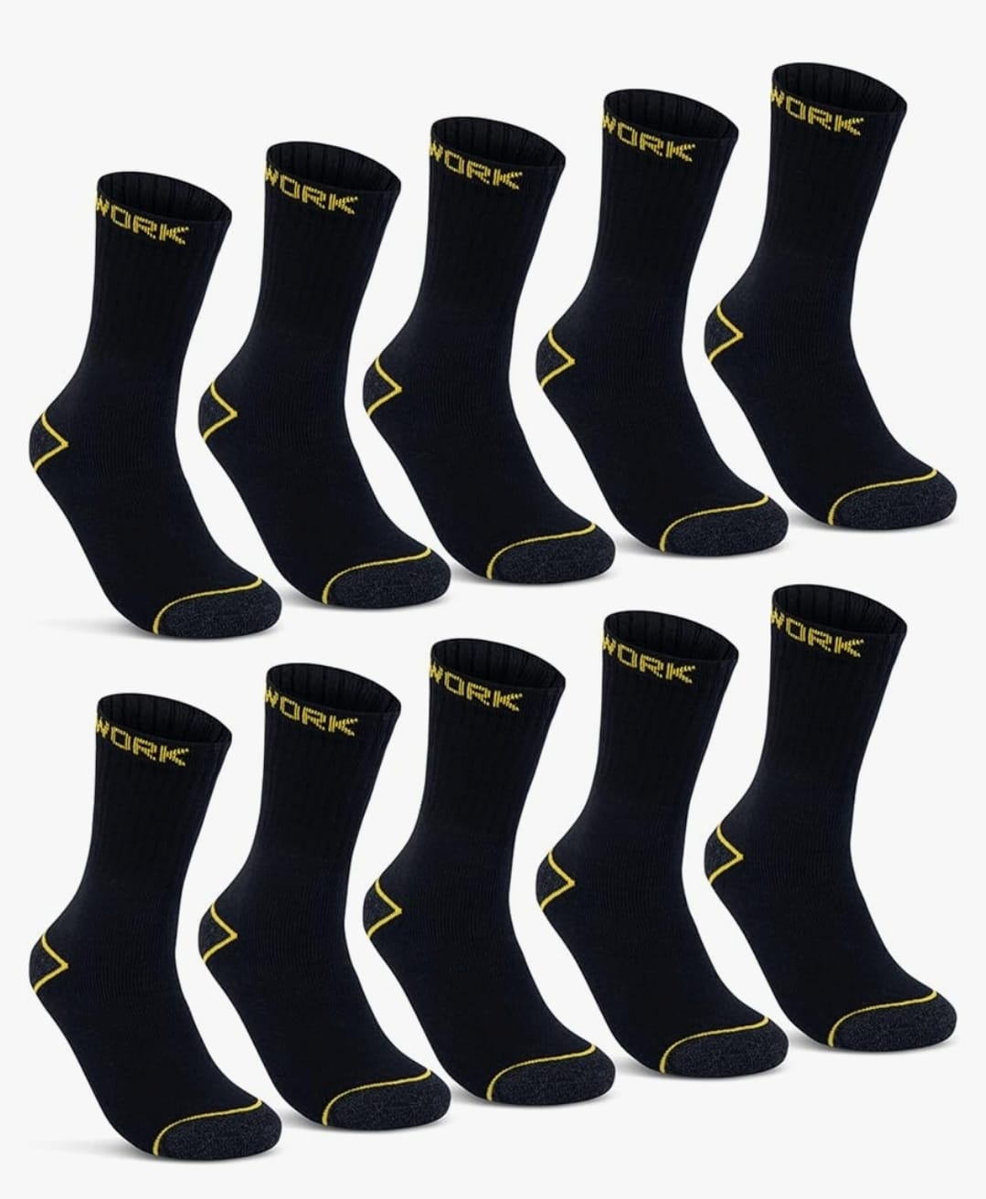 Diese Arbeitssocken für Herren im praktischen Vorteilspack sind die ideale Wahl für lange Arbeitstage und hohe Belastung. Dank der verstärkten Ferse und Spitze überzeugen sie durch eine besonders hohe Langlebigkeit und Widerstandsfähigkeit – perfekt für Beruf, Handwerk und Freizeit.